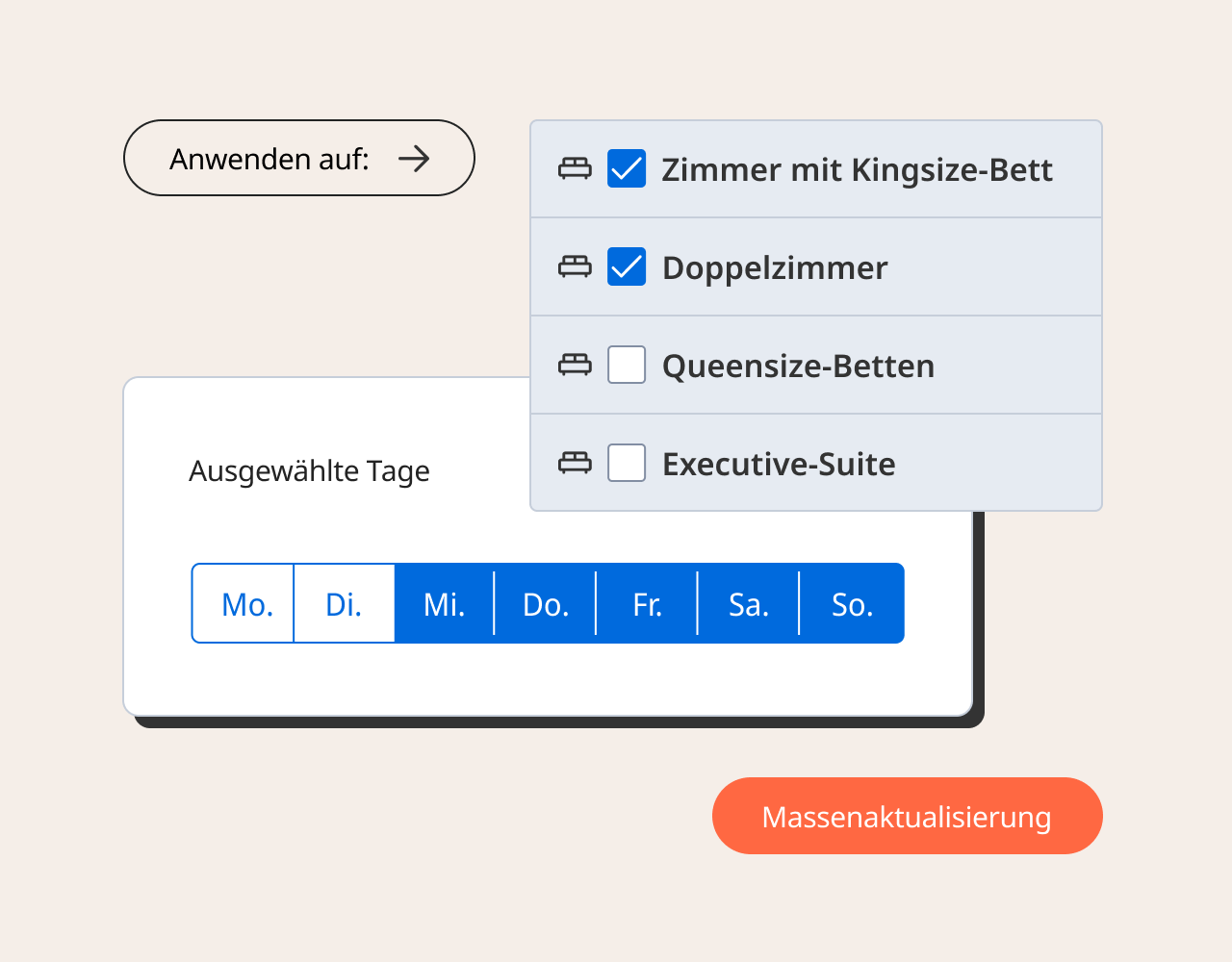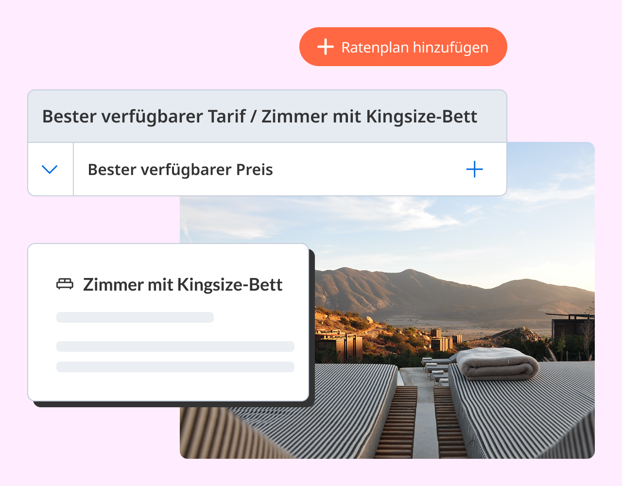 Ihre Daten bleiben zwar völlig unverändert, wir werden jedoch die Organisation der Zimmer und Raten in der neuen Plattform ändern, um Ihnen die Arbeit zu erleichtern. Aktuell haben Sie bei Little Hotelier Zimmerkategorien (wie Ihr Zimmer mit Queensize-Bett) und Ihre Zimmerpreise (wie z. B. Queen – Standardrate). In der neuen Plattform stehen Ihnen Zimmerkategorien und Ratenpläne als separate Einheiten zur Verfügung, die Sie einfacher kombinieren und anpassen können.